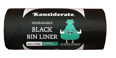 This heavy-duty 82-litre black degradable wheelie bin liner is extra strong made with LDPE for strength. TDPA is also added to degrade this liner within 24 months.